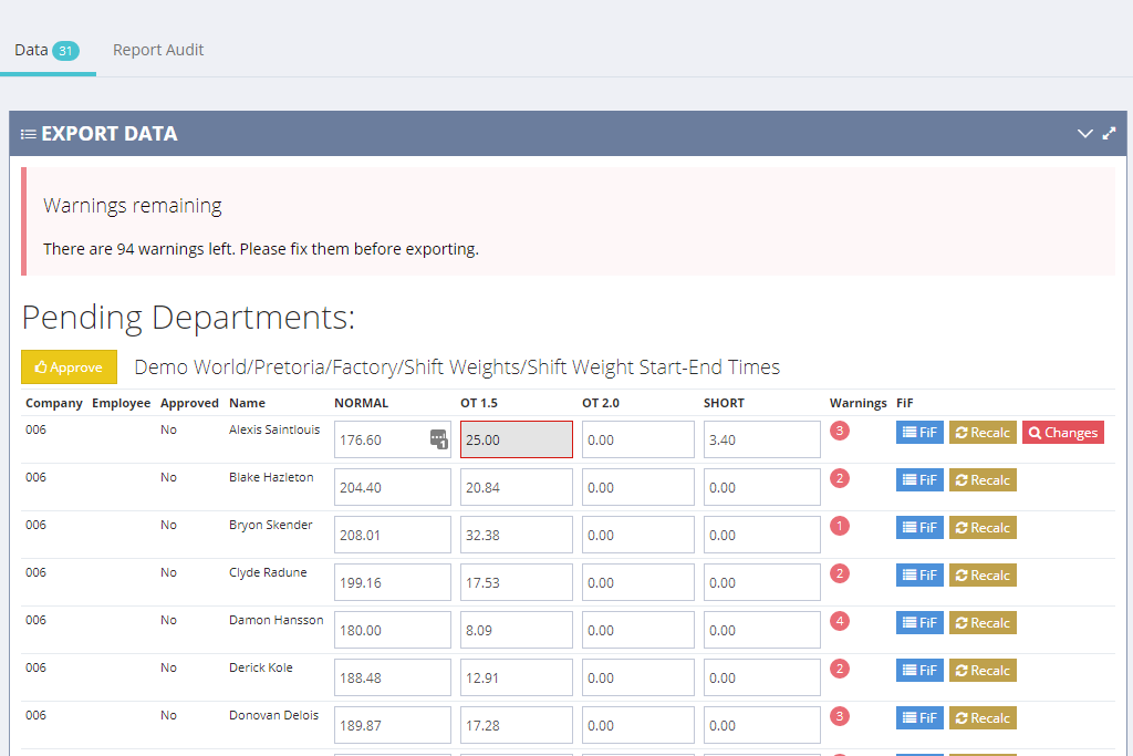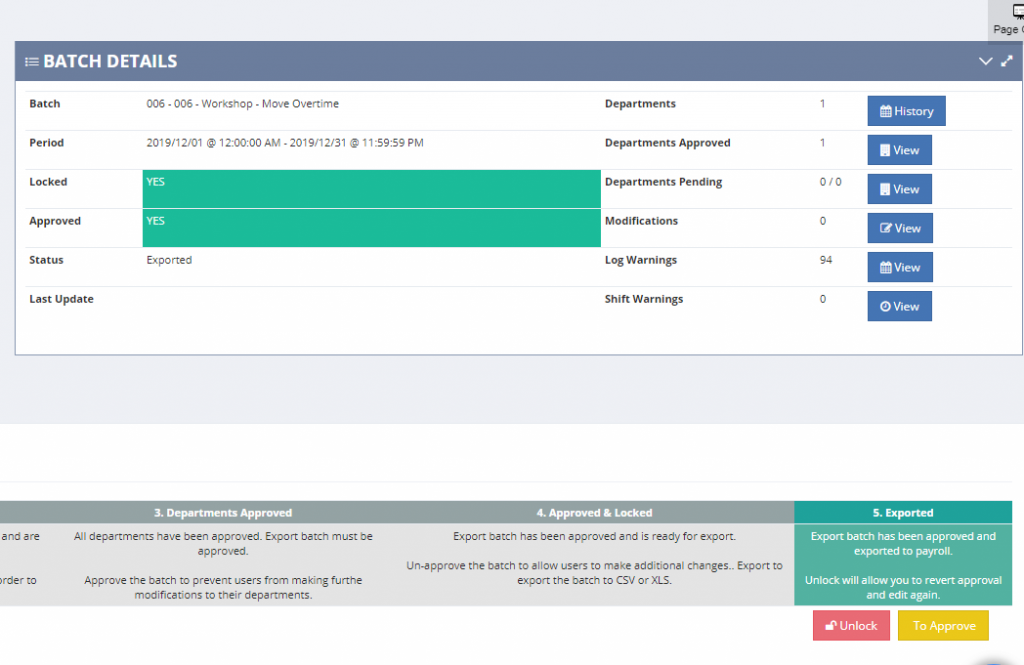 HR can then easily track the progress of approved departments and perform the final export once the time for all departments have been approved.