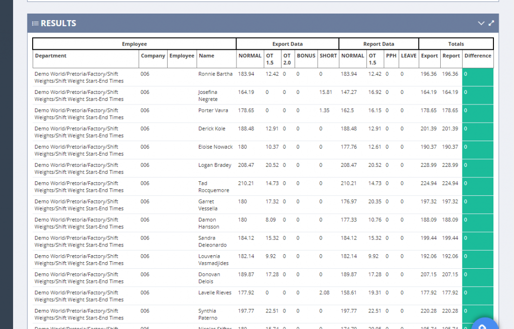 Our unique Export Audit Report allows you to quickly and easily compare report and export values. This helps you to identify any inconsistencies between your final export (payroll) values and your initial report values.